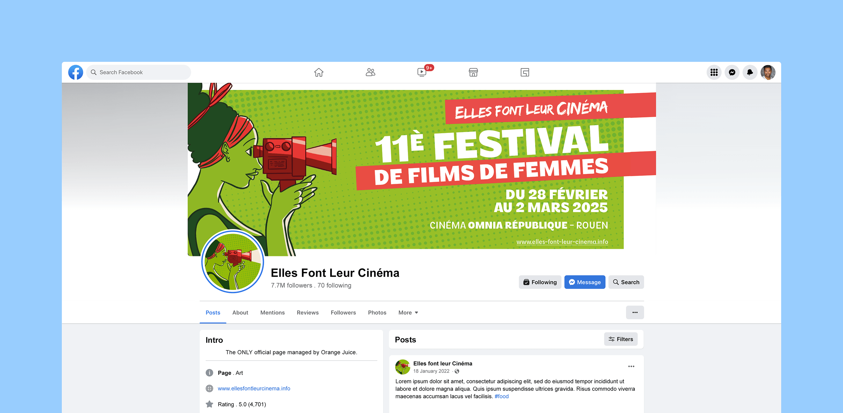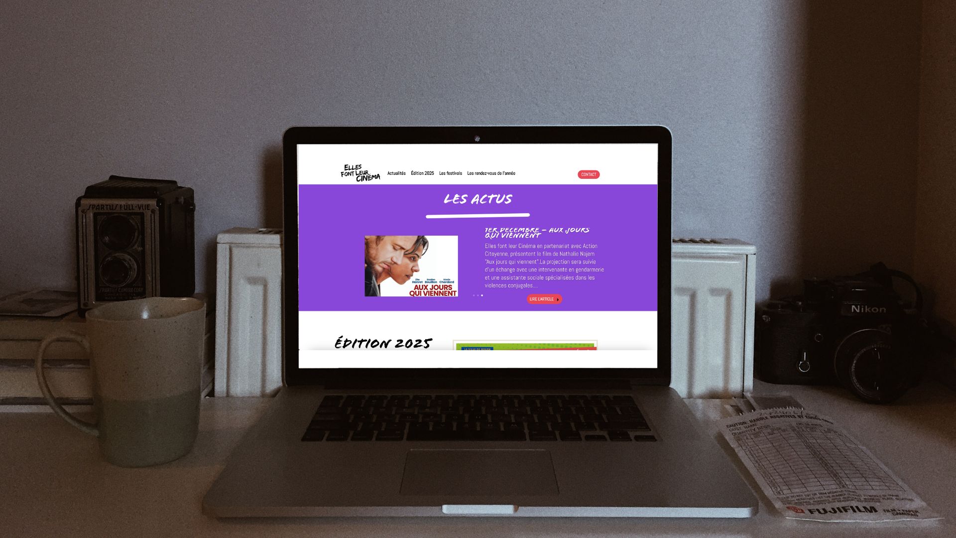 Elles font leur cinéma est une association qui met en lumière les films réalisés par des femmes et propose chaque début d’année un festival dédié. Depuis 2022, j’accompagne l’équipe sur la communication du festival : refonte du site web, création de l’affiche annuelle, illustrations, supports pour les réseaux sociaux et mise en page du programme du festival.